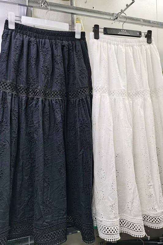 Hollow exquisite embroidery cotton skirt romantic French swing skirt female holiday skirt