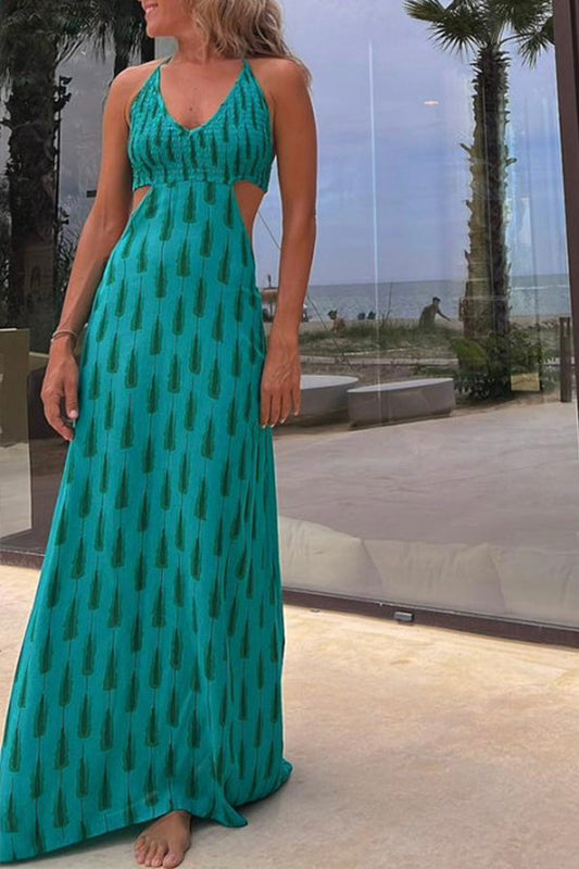 Off-Shoulder Casual Comfort Halter Neck Long Pocket Dress