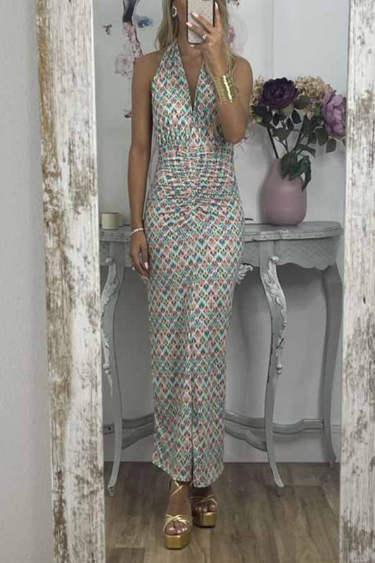 Sexy backless halter neck v-neck dress