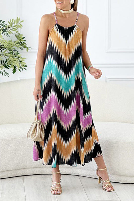 Blue Striped Fly Sleeve Square Neck Loose Resort Dress