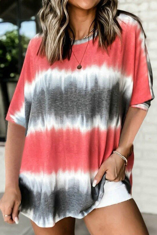 Tie-dye Printed Round Neck Dolman Sleeve Short Sleeve Oversized Top