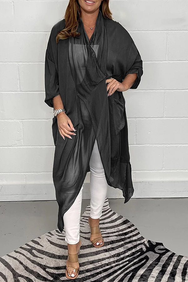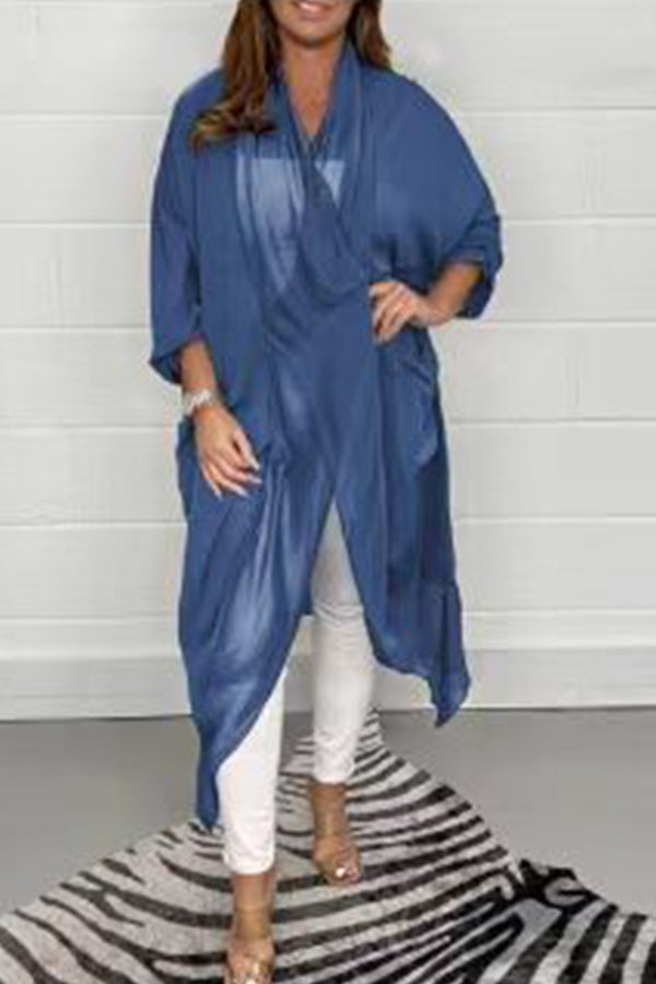 Fashionable all-match thin silk loose V-neck design solid color top
