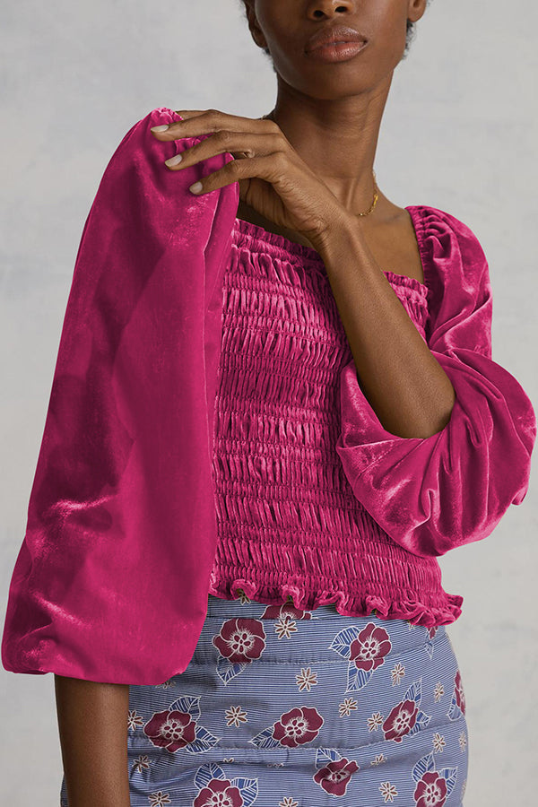 Plain Ruffle Sleeve Buttoned Plus Size Boho Top